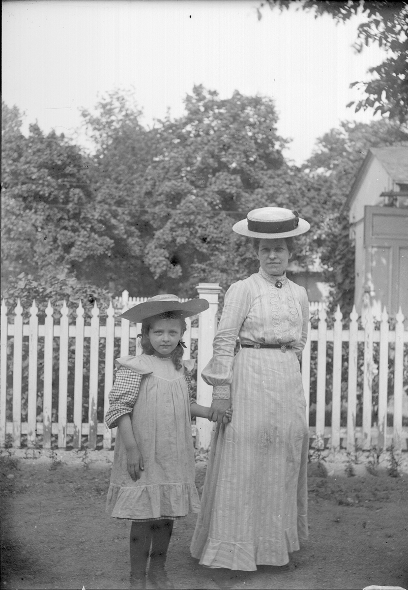Emma Osti och flicka på gården utanför ateljén på Bredgränd 11, Uppsala före 1914