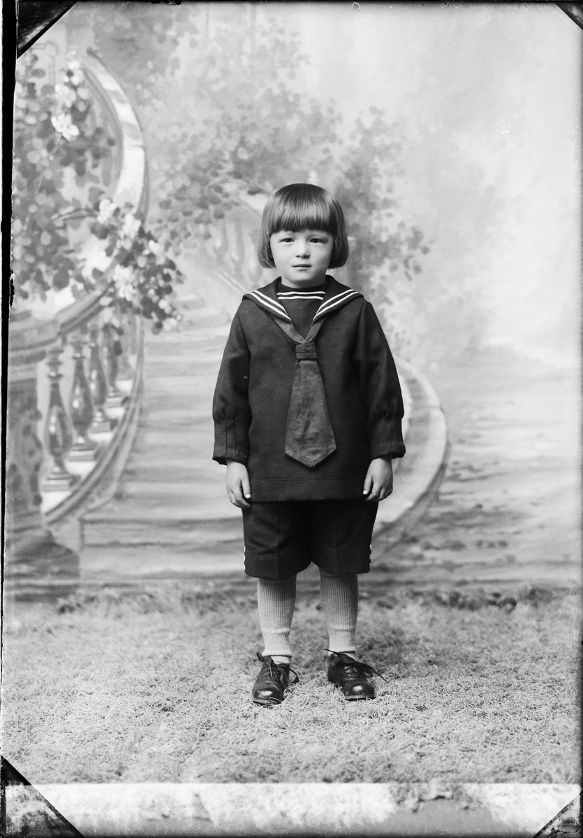 Ateljéporträtt - barn till Eskil Eriksson från Borggårde, Hökhuvud socken, Uppland 1926