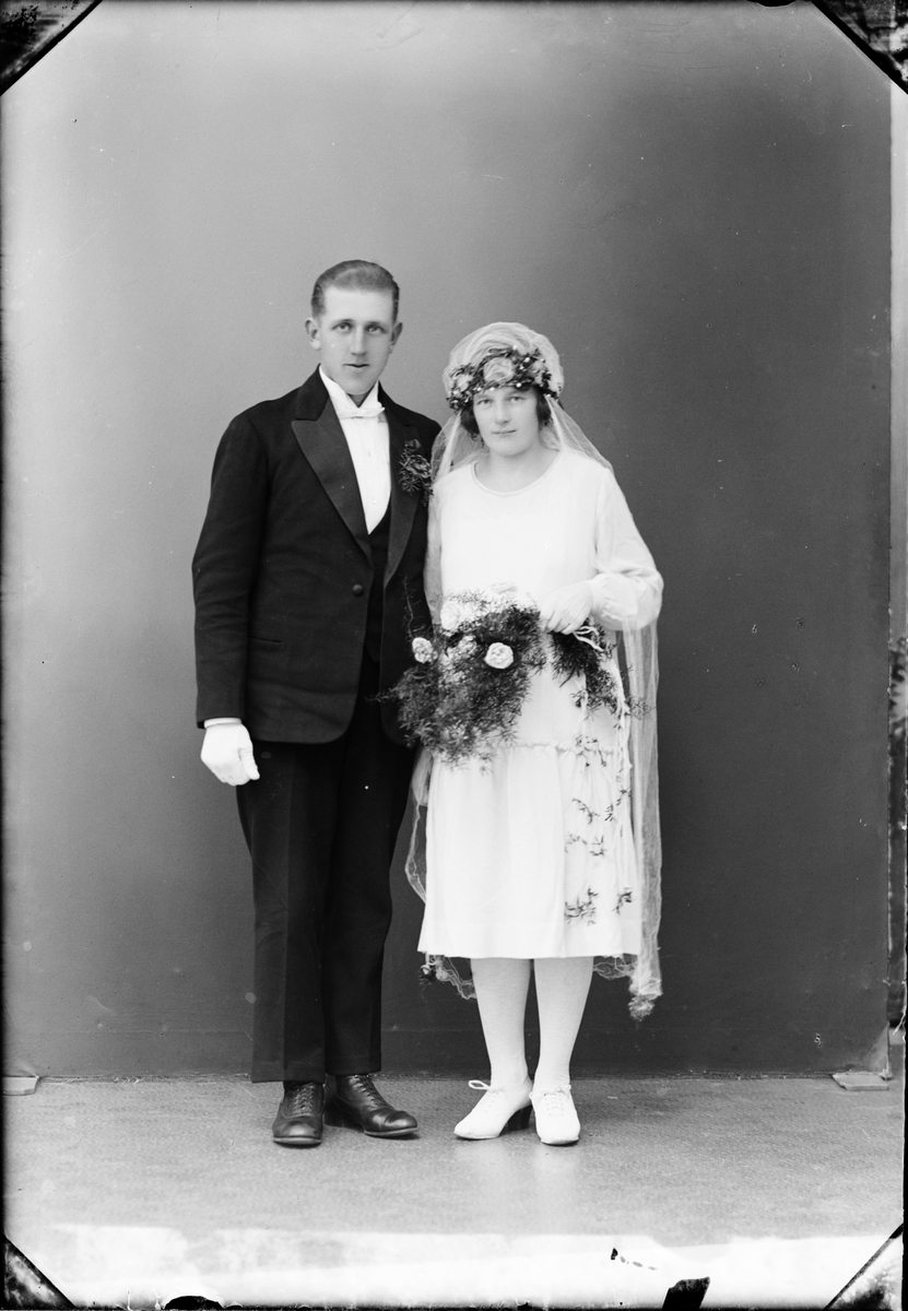 Ateljéporträtt - Brudparet Eriksson från Stummelbo, Valö socken, Uppland 1926