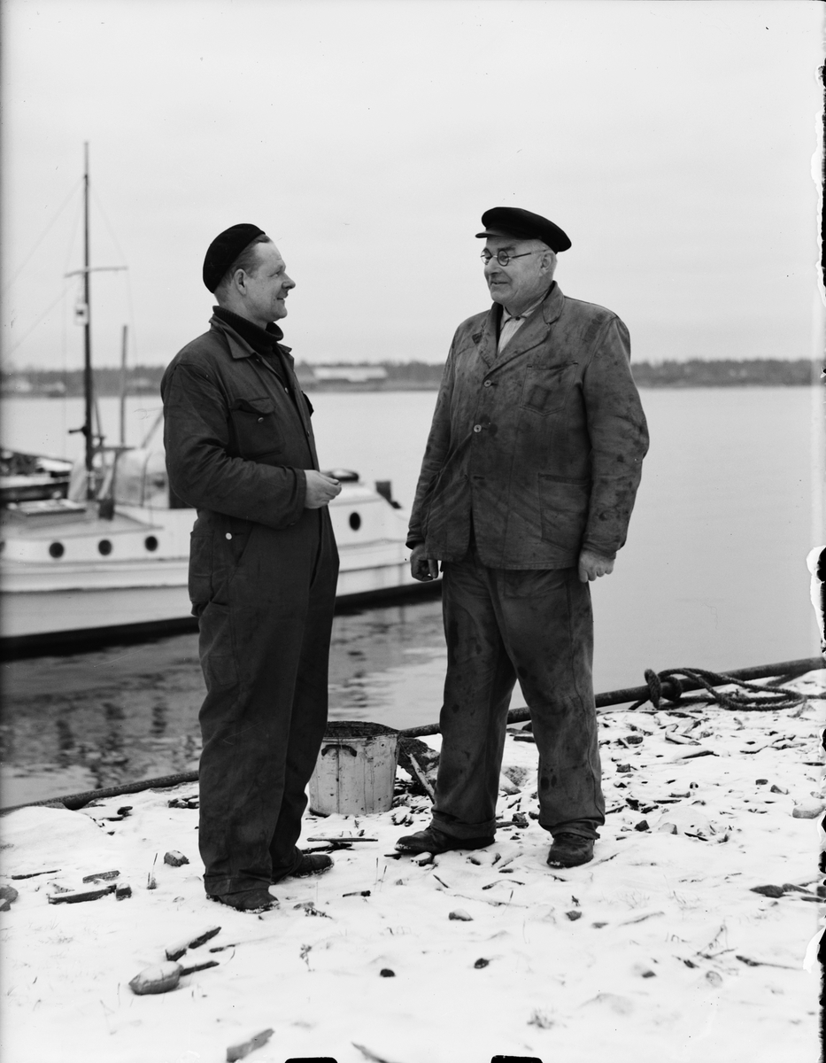 Två män vid varvet "Slipen", Öregrund, Uppland