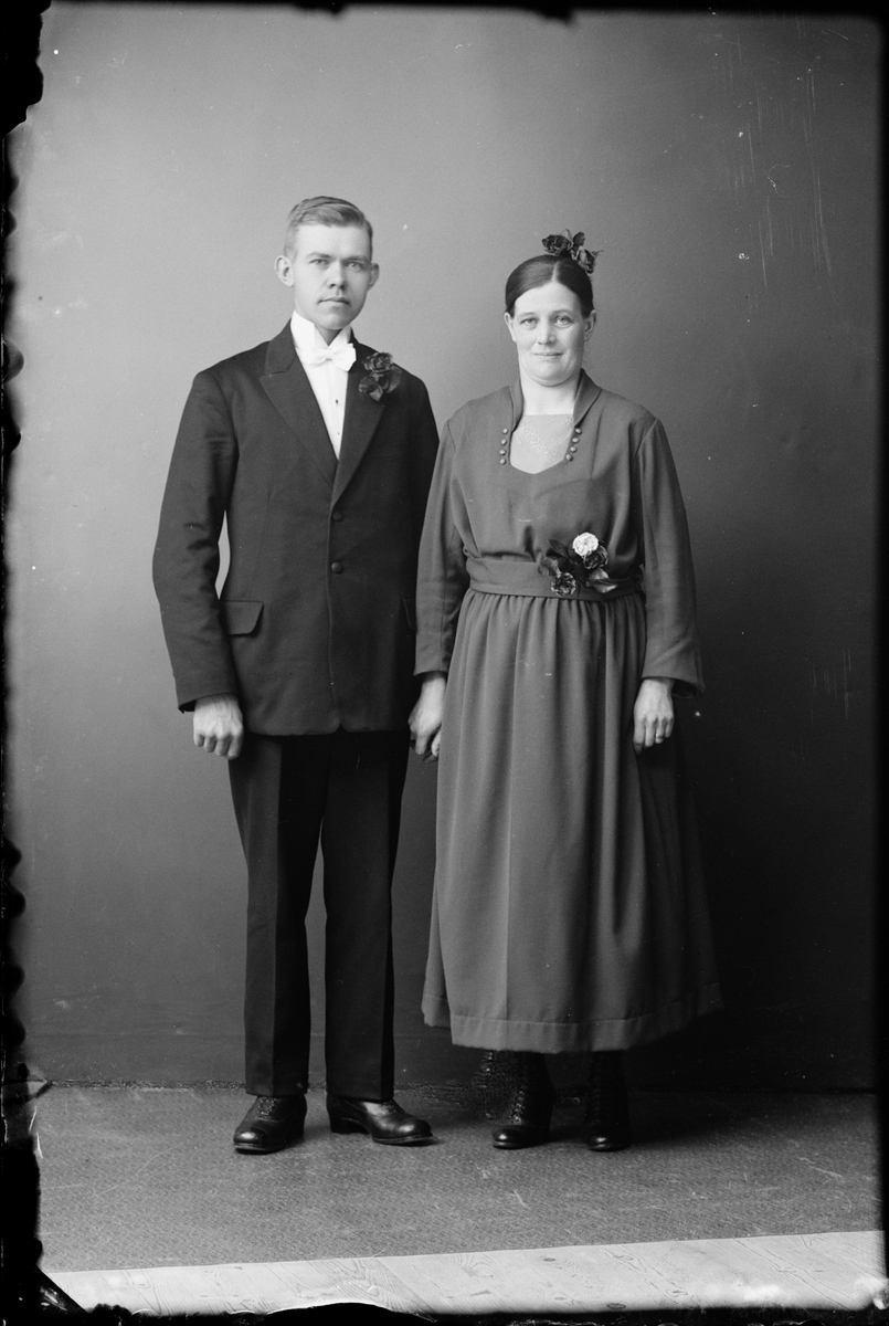 Ateljéporträtt - kvinna och Wiktor Hultman från Ånö, Hökhuvuds socken, Uppland 1924