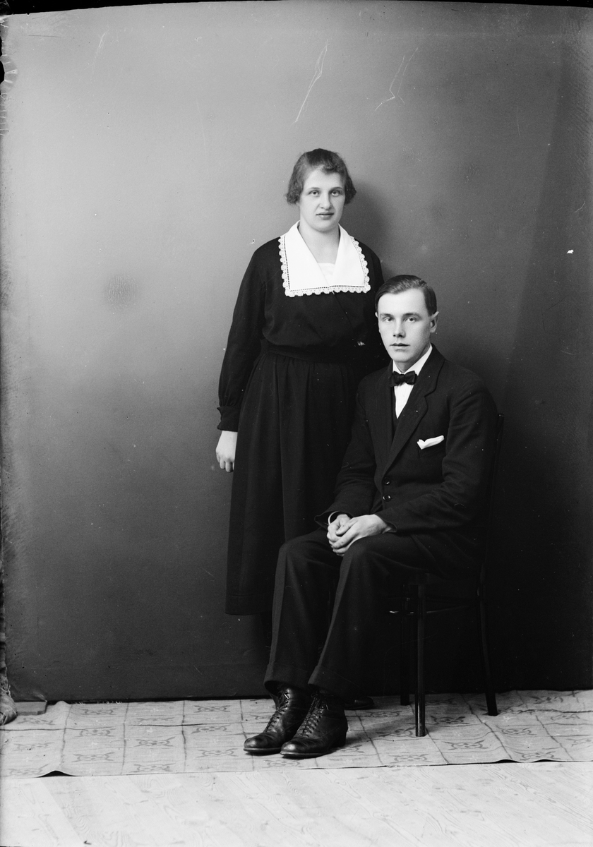 Ateljéporträtt - paret Johansson från Aspö, Börstil socken, Uppland
