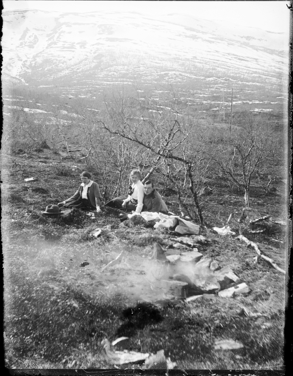 Man tillsammans med två kvinnor i fjällandskap, Sverige