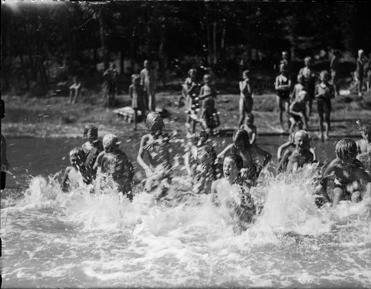 Barnkoloni - badande barn, Sandika, Harg socken, Uppland