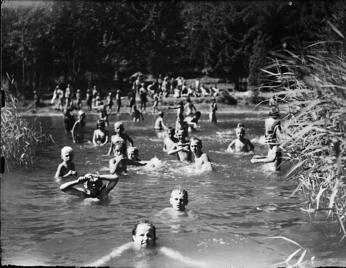 Barnkoloni - badande barn, Sandika, Harg socken, Uppland