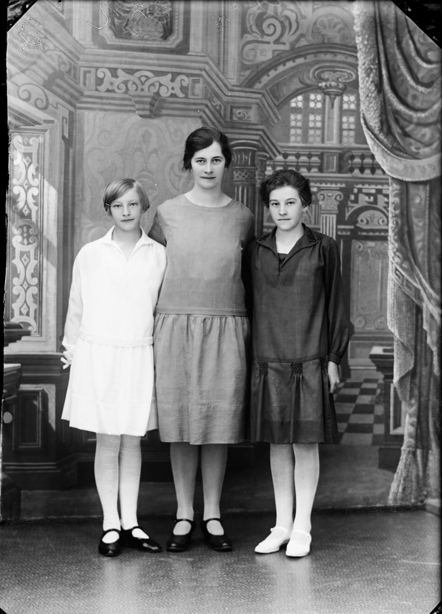 Ateljéporträtt - Augusta Pettersson med flickor från Harg socken, Uppland