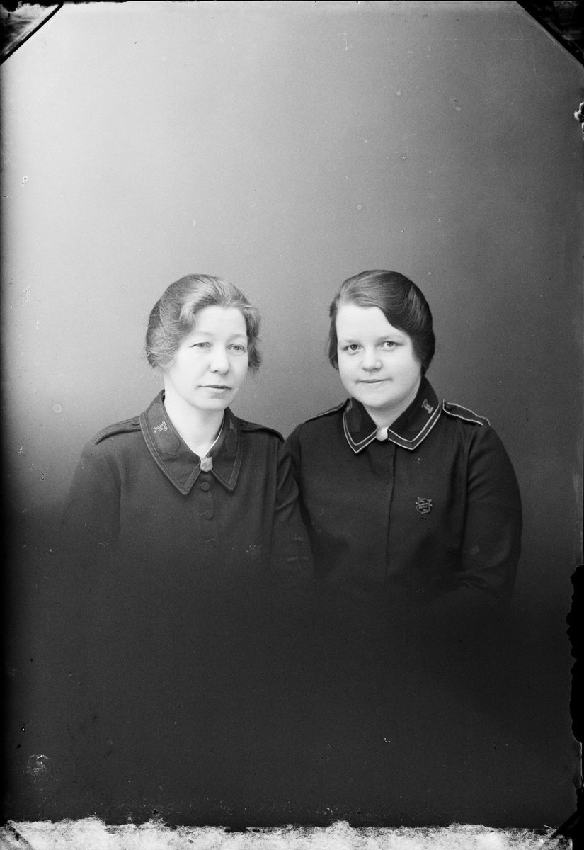 Ateljéporträtt - två kvinnliga frälsningssoldater, Östhammar Uppland