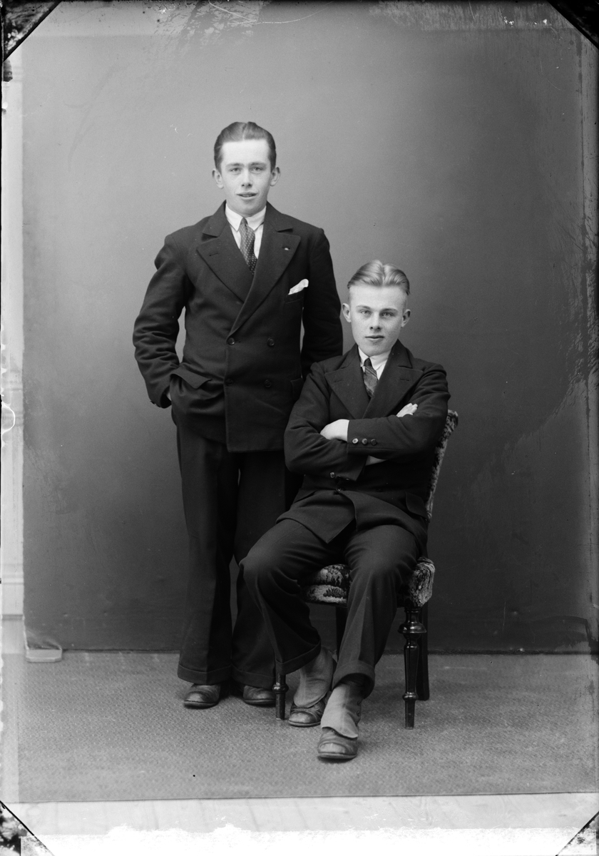 Ateljéporträtt - två unga män från Stor-Rångsen, Forsmark socken, Uppland