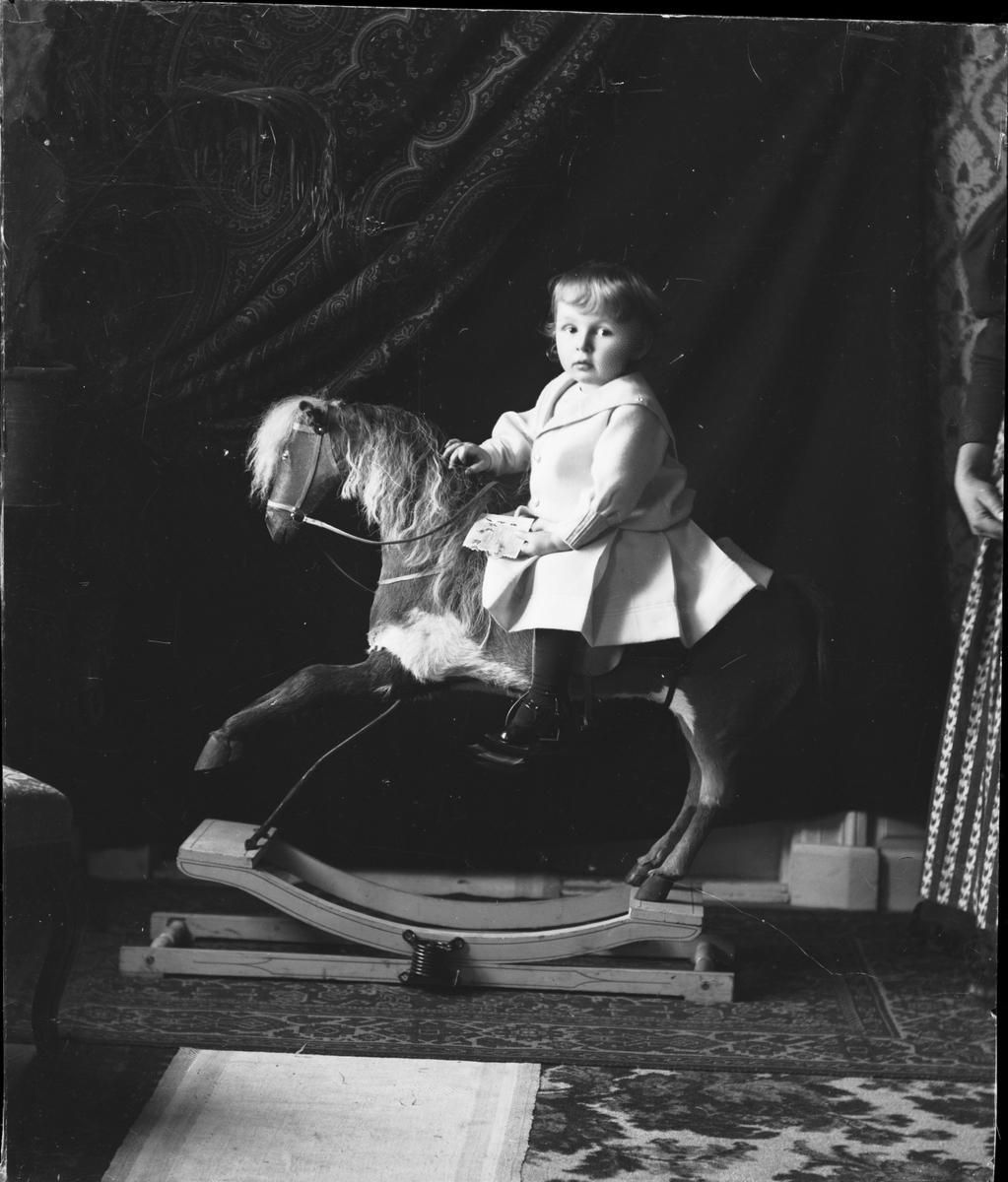 Ateljéporträtt - barn på gunghäst, Östhammar, Uppland