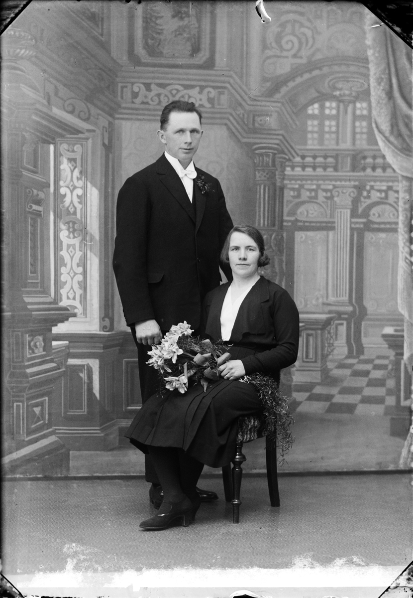 Ateljéporträtt - brudparet Elin Mattsson från Långalma, Uppland