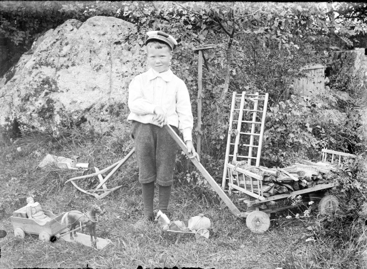 Olle Eklund med sina leksaker, Åby, Funbo socken, Uppland
