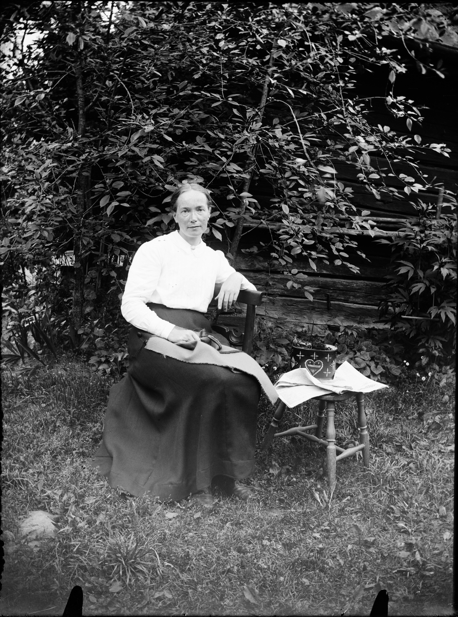 Kvinna med handarbete i knät, Östhammar, Uppland