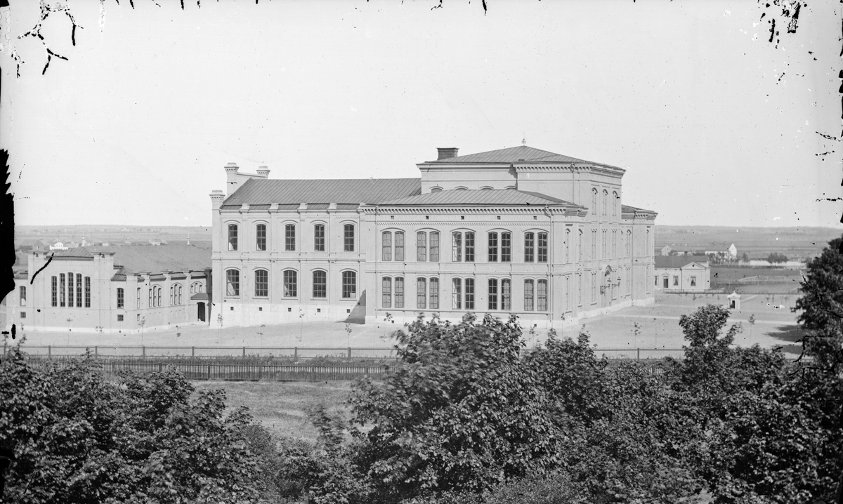 Högre Allmänna Läroverket från sydväst, kvarteret Skolan, Luthagen, Uppsala efter 1869