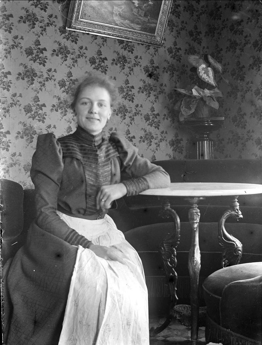 Ung kvinna i hemmiljö, sannolikt Uppsala
