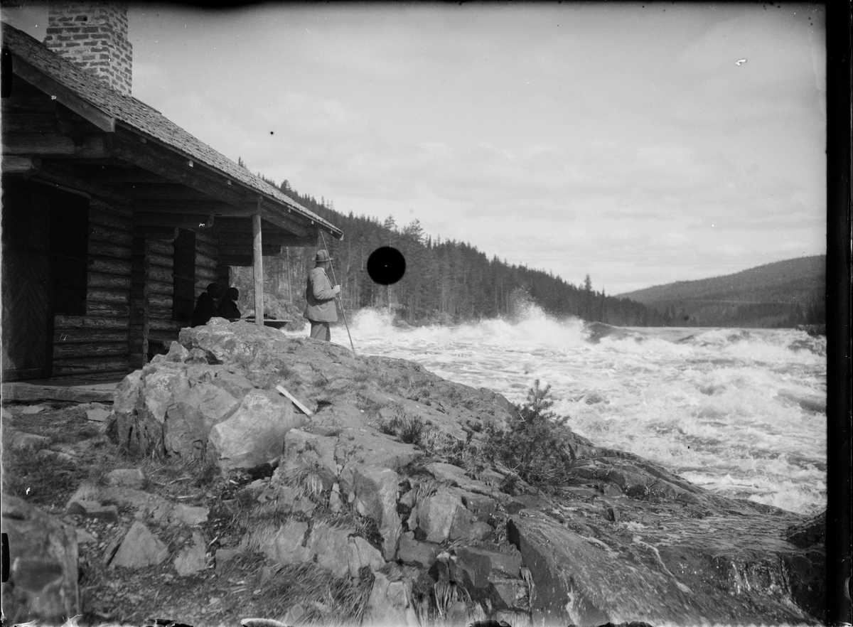 Titel: Man ser ut över forsande vattendrag, Sverige