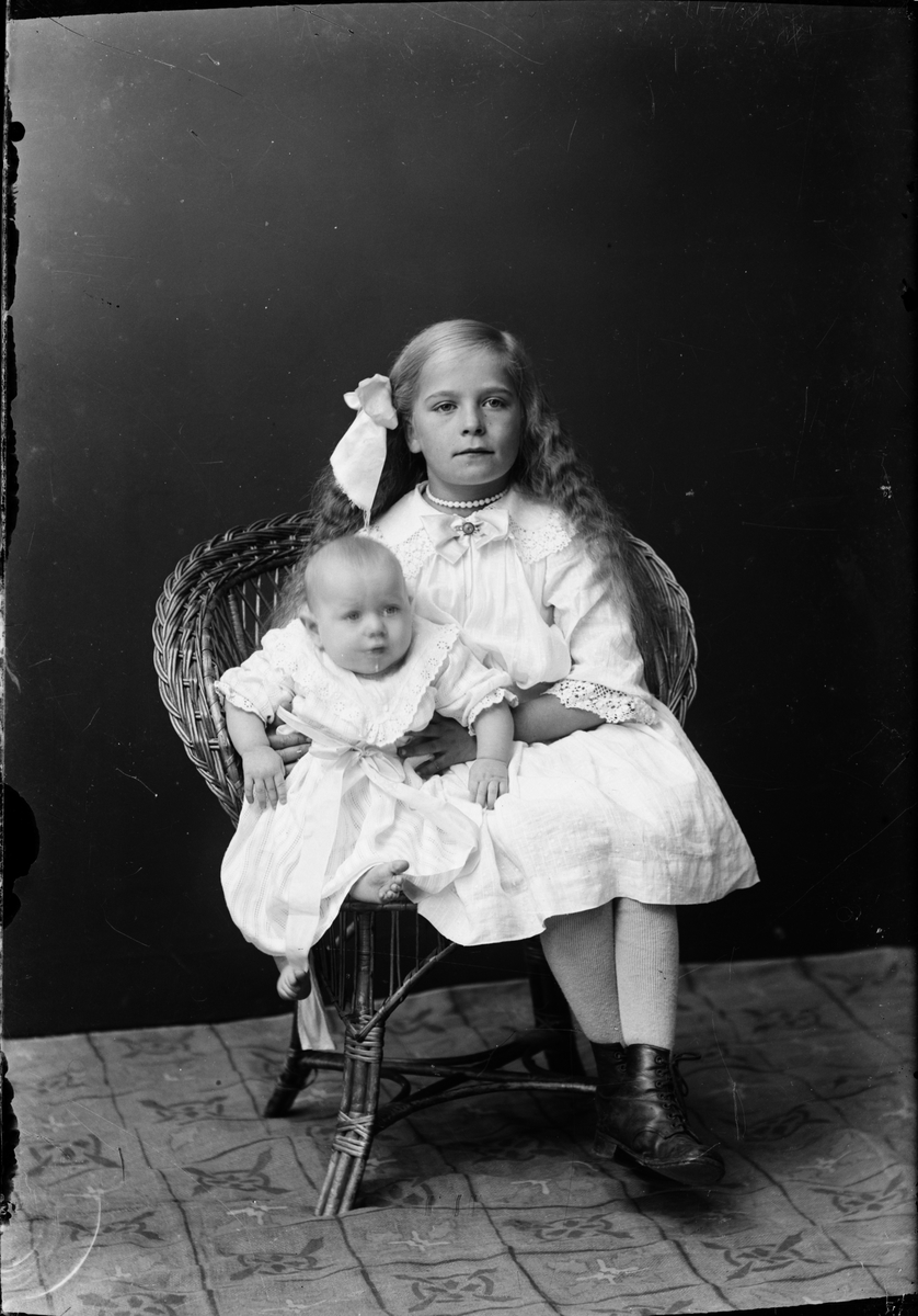 Barnporträtt - en flicka och ett spädbarn, Östhammar, Uppland