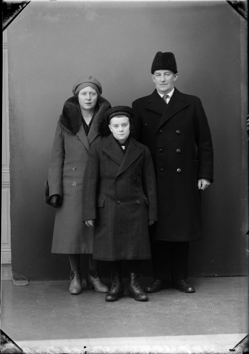 Kvinna, man och pojke i ytterkläder, Östhammar, Uppland