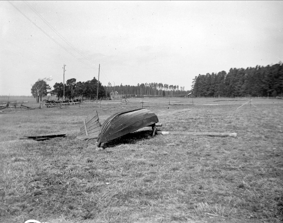 Båt på stranden vid Dalälven, Marma, Älvkarleby socken, Uppland maj 1929
