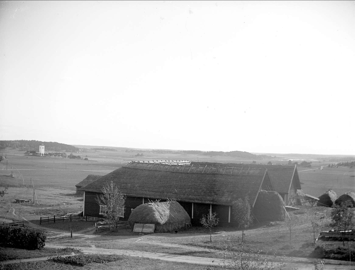 Landskapsvy med fägård i förgrunden, nära Venngarnsviken, Edeby, Vassunda socken, Uppland 1914