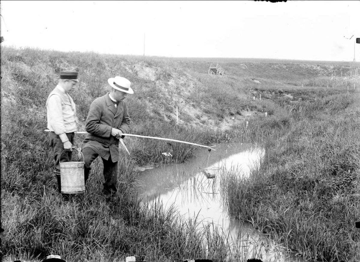 Henning Lundin fiskar kräftor i Lillån, Åby, Funbo socken, Uppland
