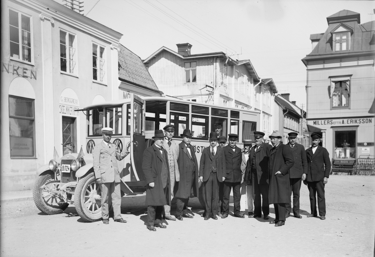 "Karlsson och Kvists buss på Östhammars torg", Östhammar, Uppland 1922