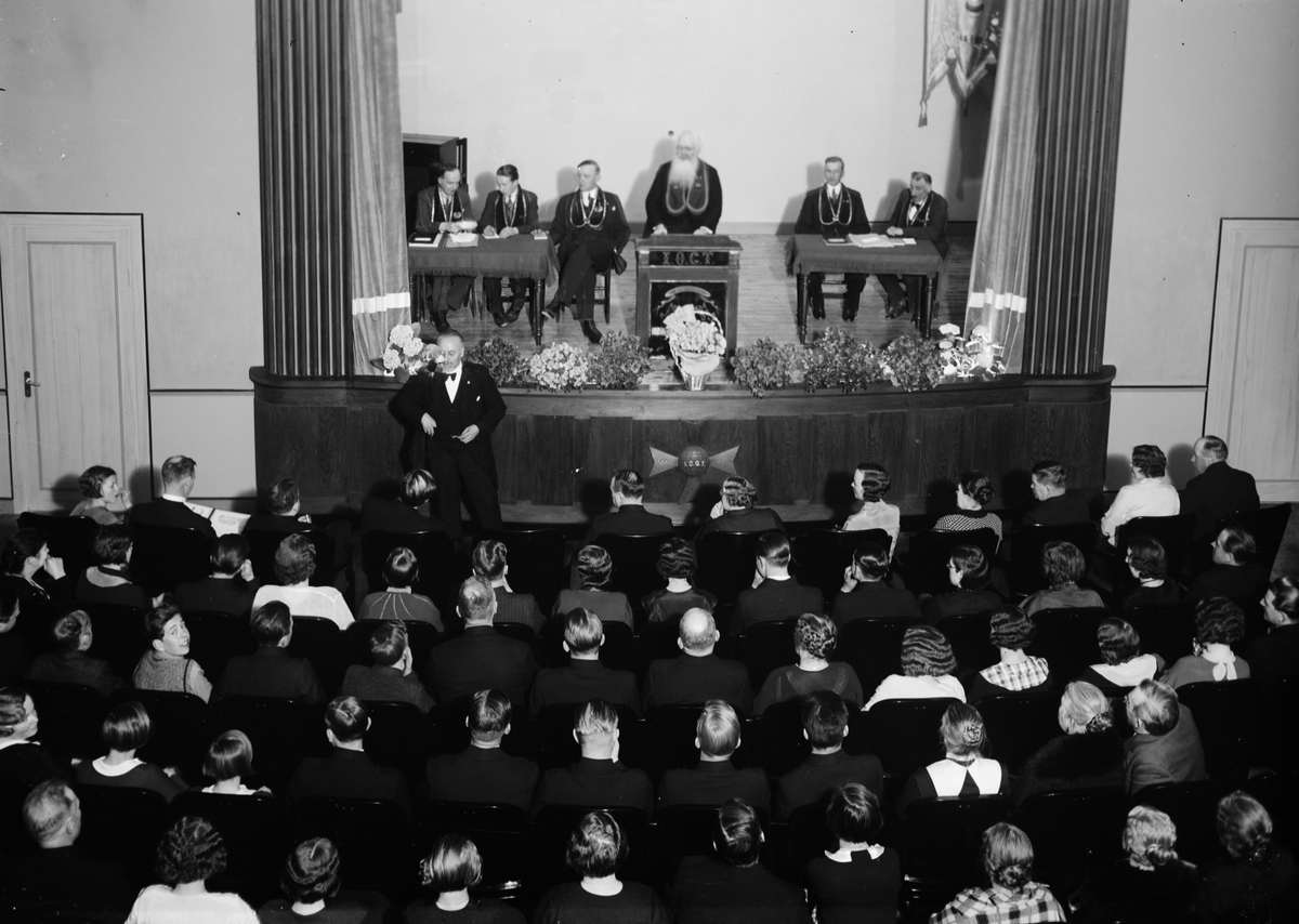 IOGT-logen "Drottning Kristina" i Storbrunn, i talarstolen Oskar Olsson, nedanför podiet K G Blomgren" Östhammar, Uppland