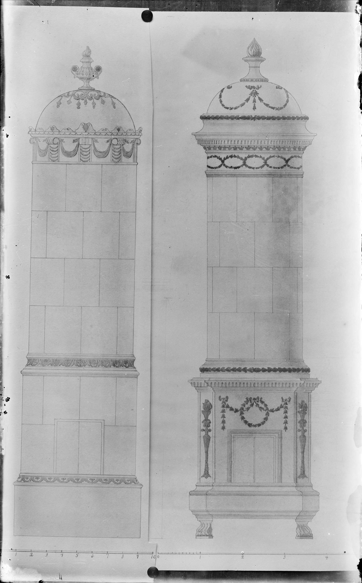 Ritning till kakelugn för Upsala Kakelfabriks AB, Uppsala 1906