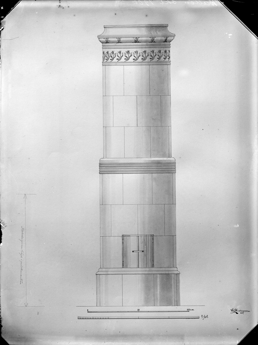 Ritning till kakelugn för Upsala Kakelfabriks AB, Uppsala 1906