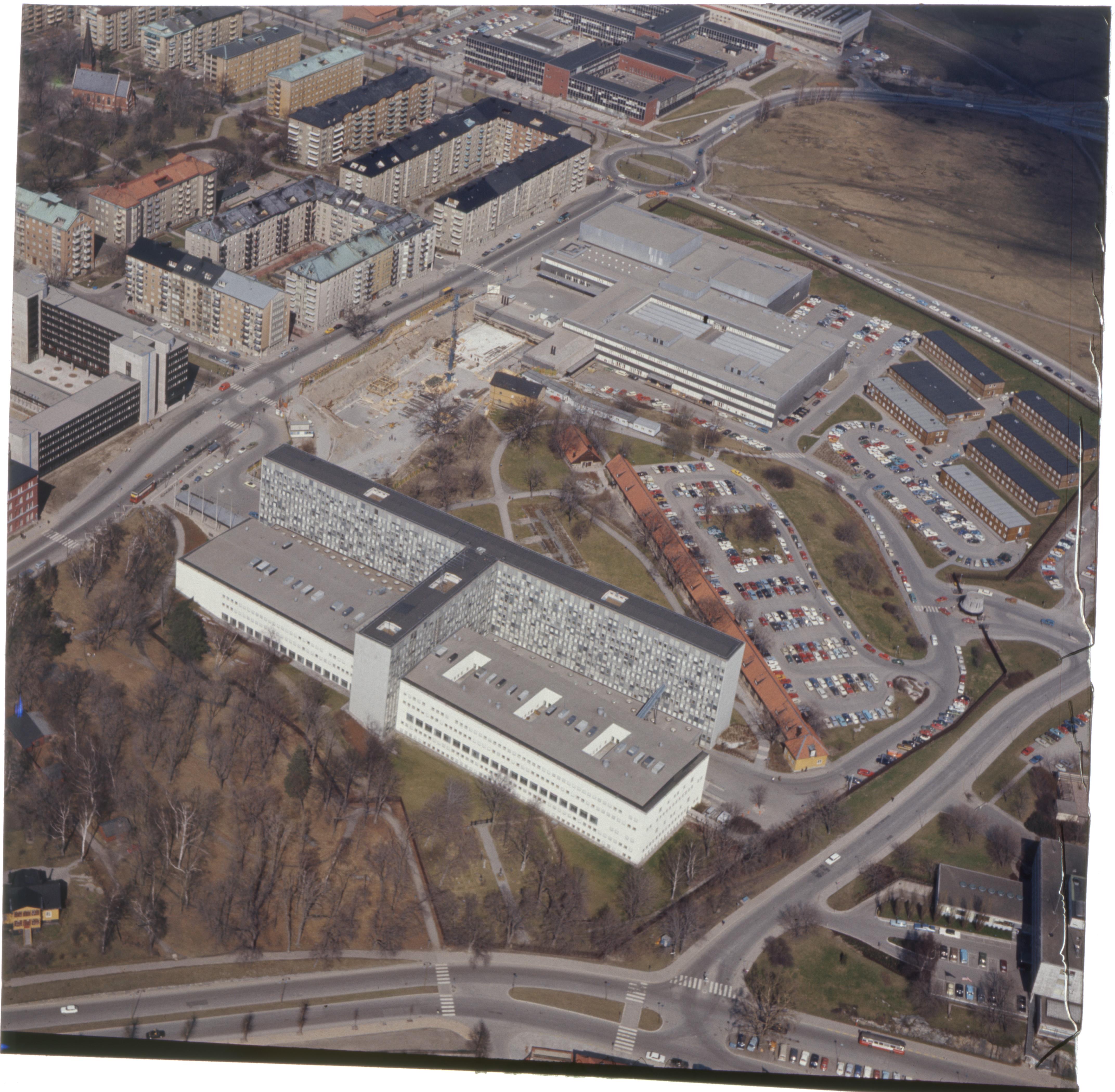 Radiohuset, Sveriges Television och garnisonen. I bakgrunden Konstfack och Filminstitutet