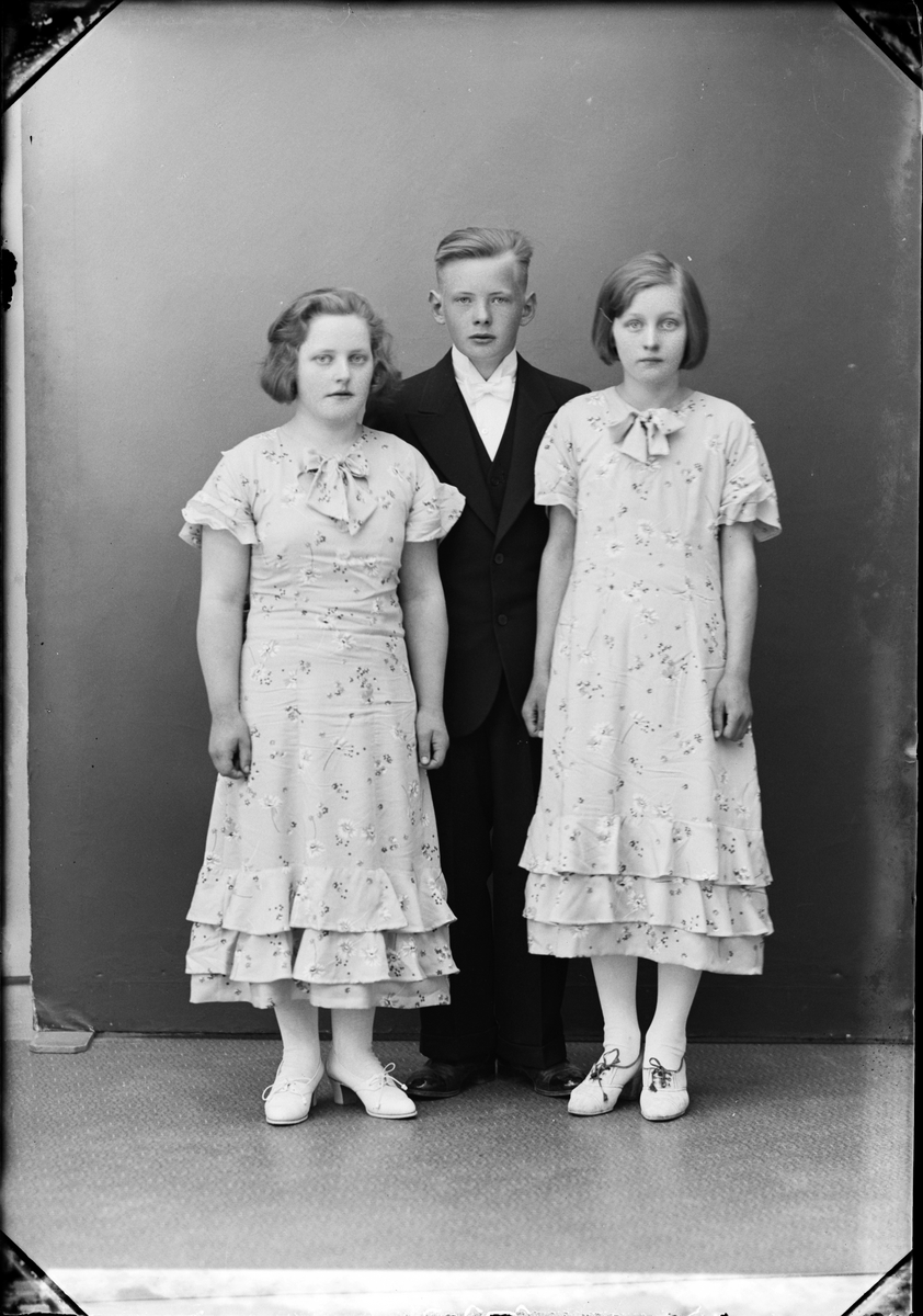 Ateljéporträtt - en pojke och två flickor, Uppland