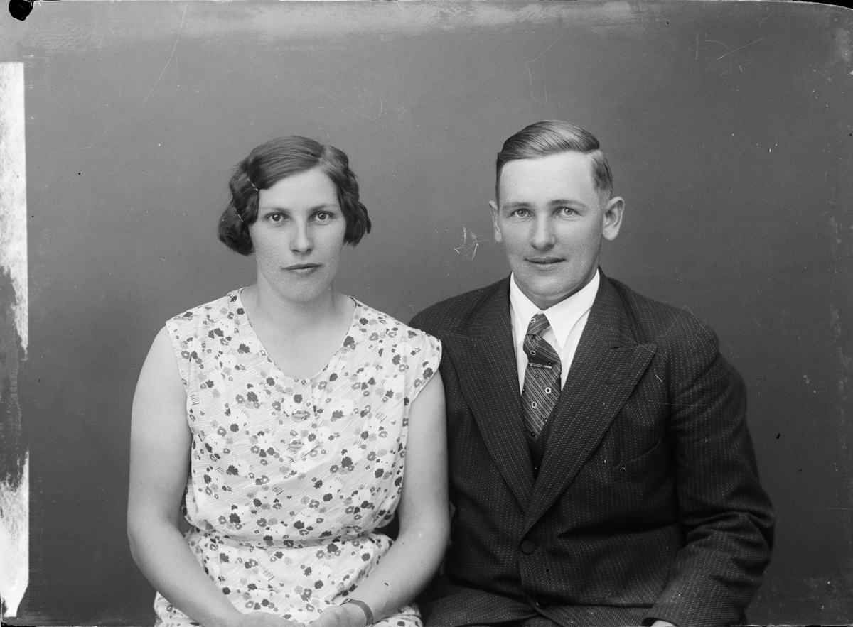 Ateljéporträtt - kvinna och man från Bläckdal, Uppland
