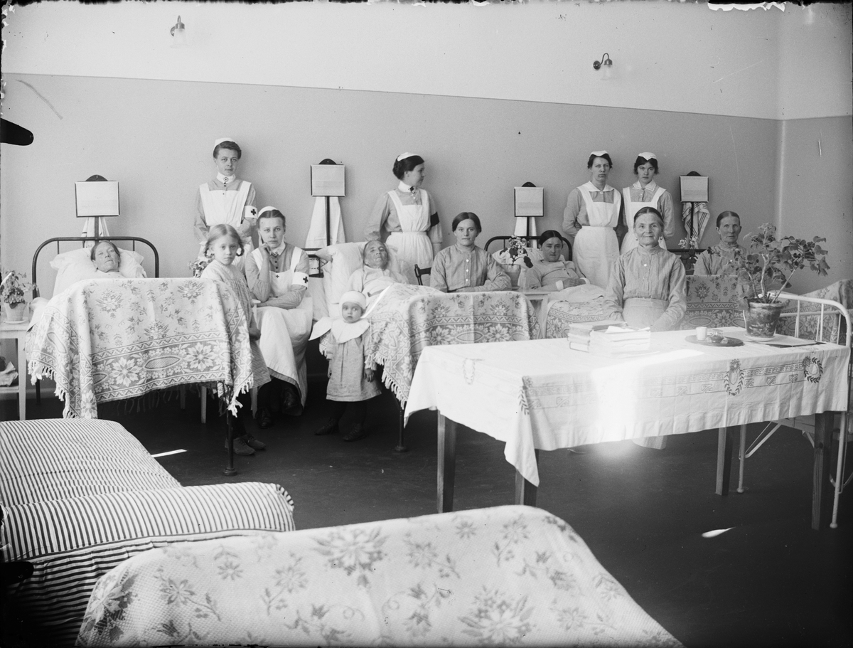 Sjuksal med patienter och sjukvårdspersonal, Östhammars lasarett, Uppland