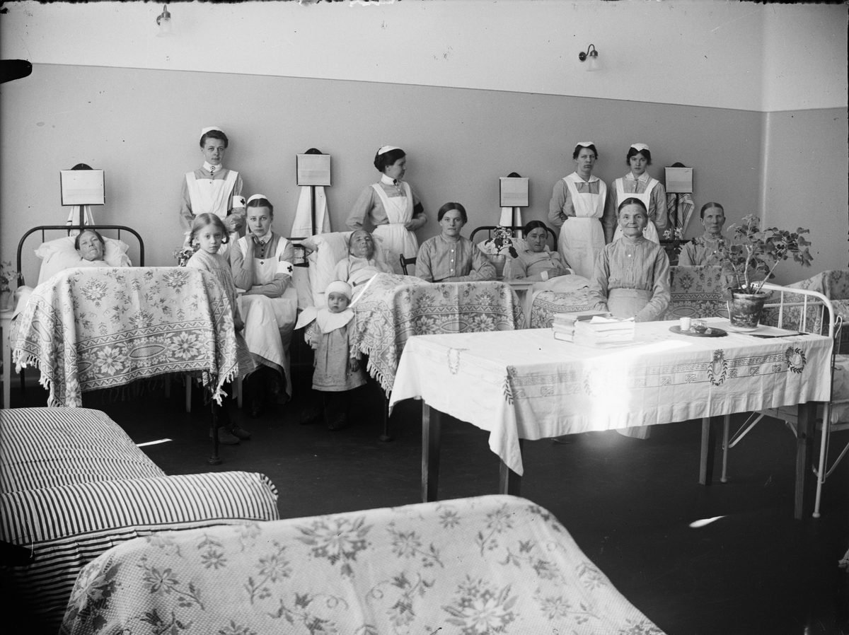 Sjuksal med patienter och sjukvårdspersonal, Östhammars lasarett, Uppland