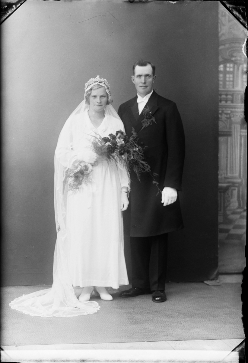 Ateljéporträtt - brudparet Sandström från Forsmark, Uppland