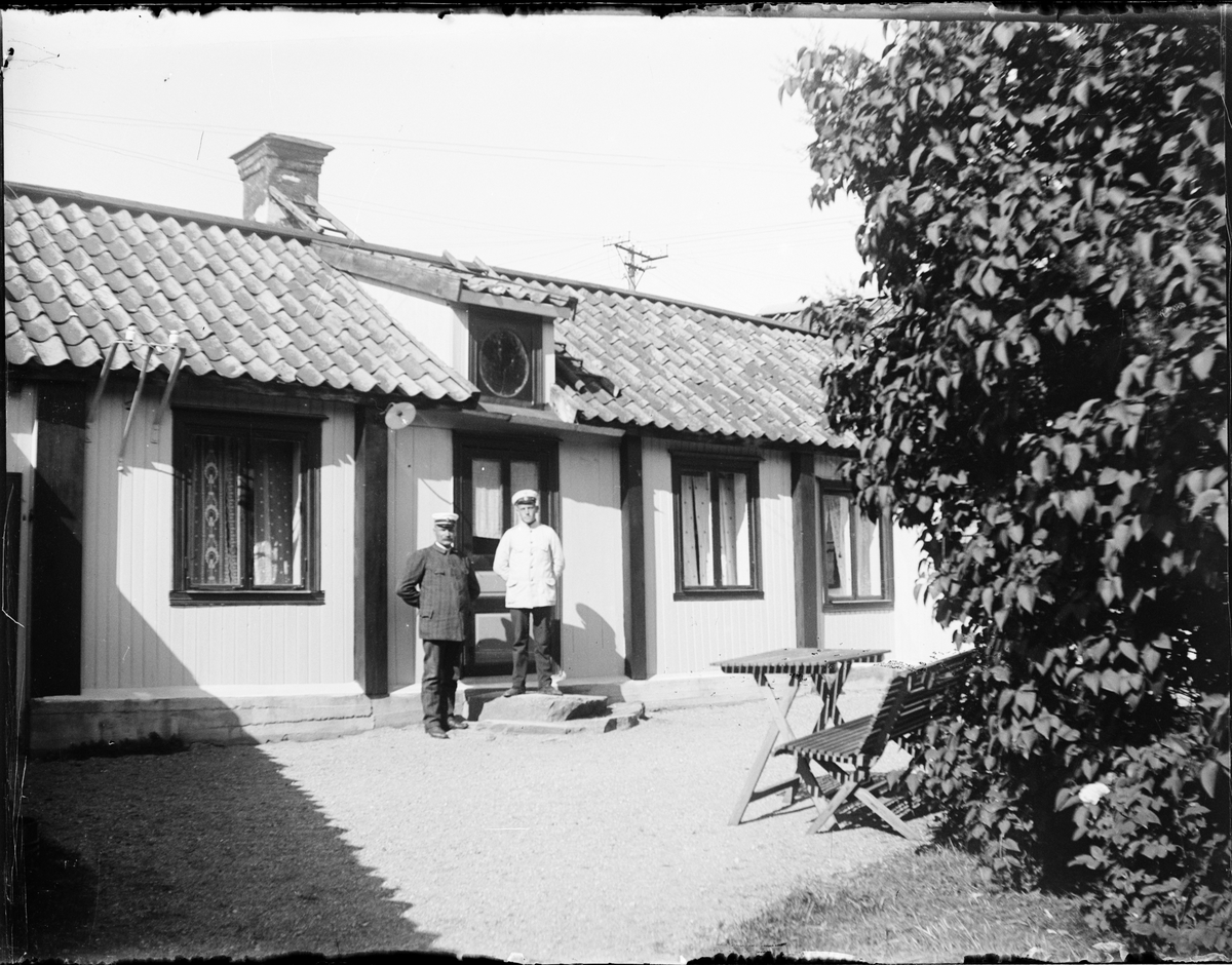 Män framför byggnad, Östhammar, Uppland