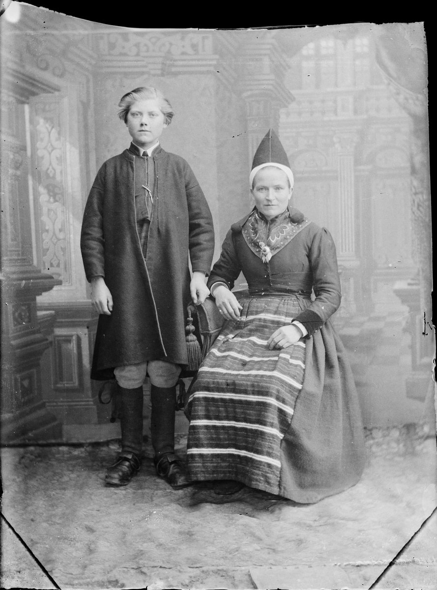 Ateljéporträtt - man och kvinna klädda i folkdräkt från Dalarna