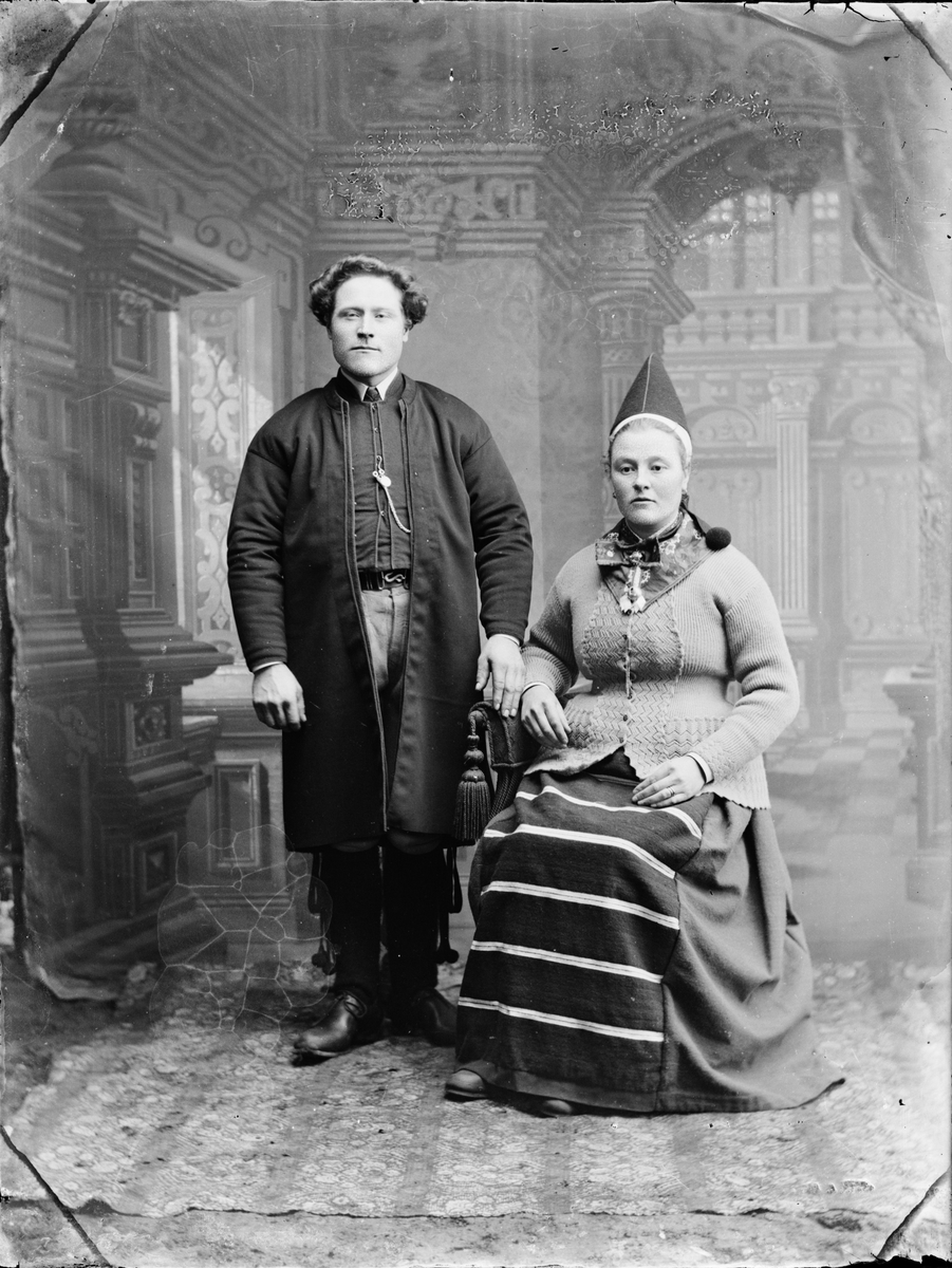 Ateljéporträtt - man och kvinna klädda i folkdräkt från Dalarna