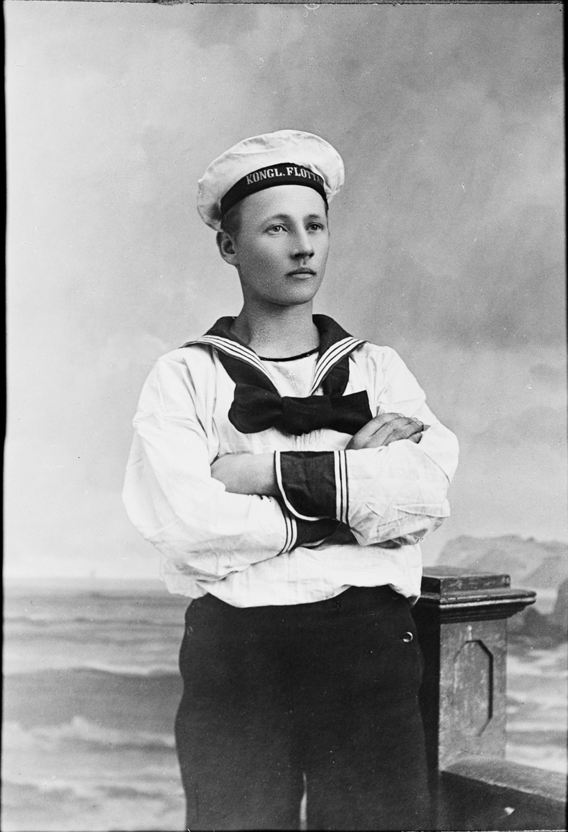 Ateljéporträtt - man i sjömansuniform, Östhammar, Uppland