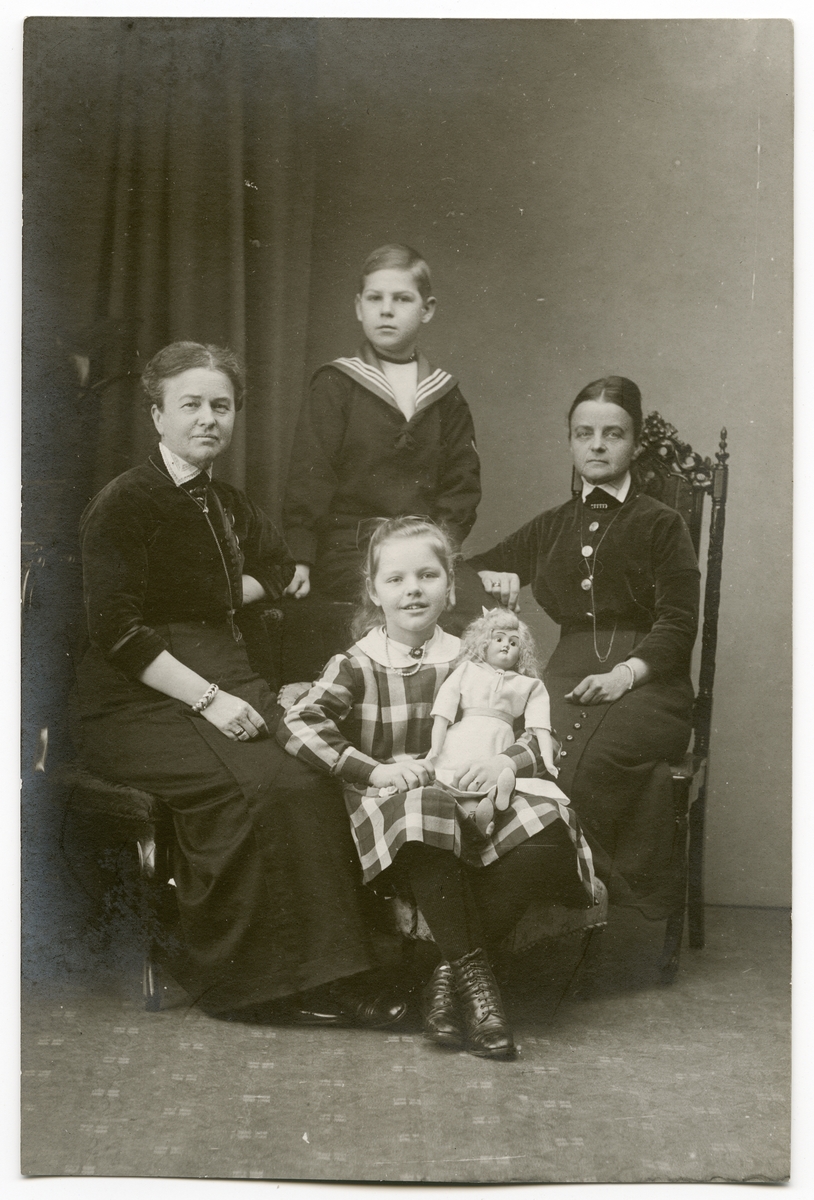 Ateljéporträtt - två kvinnor, en pojke och en flicka, Uppsala, före 1914