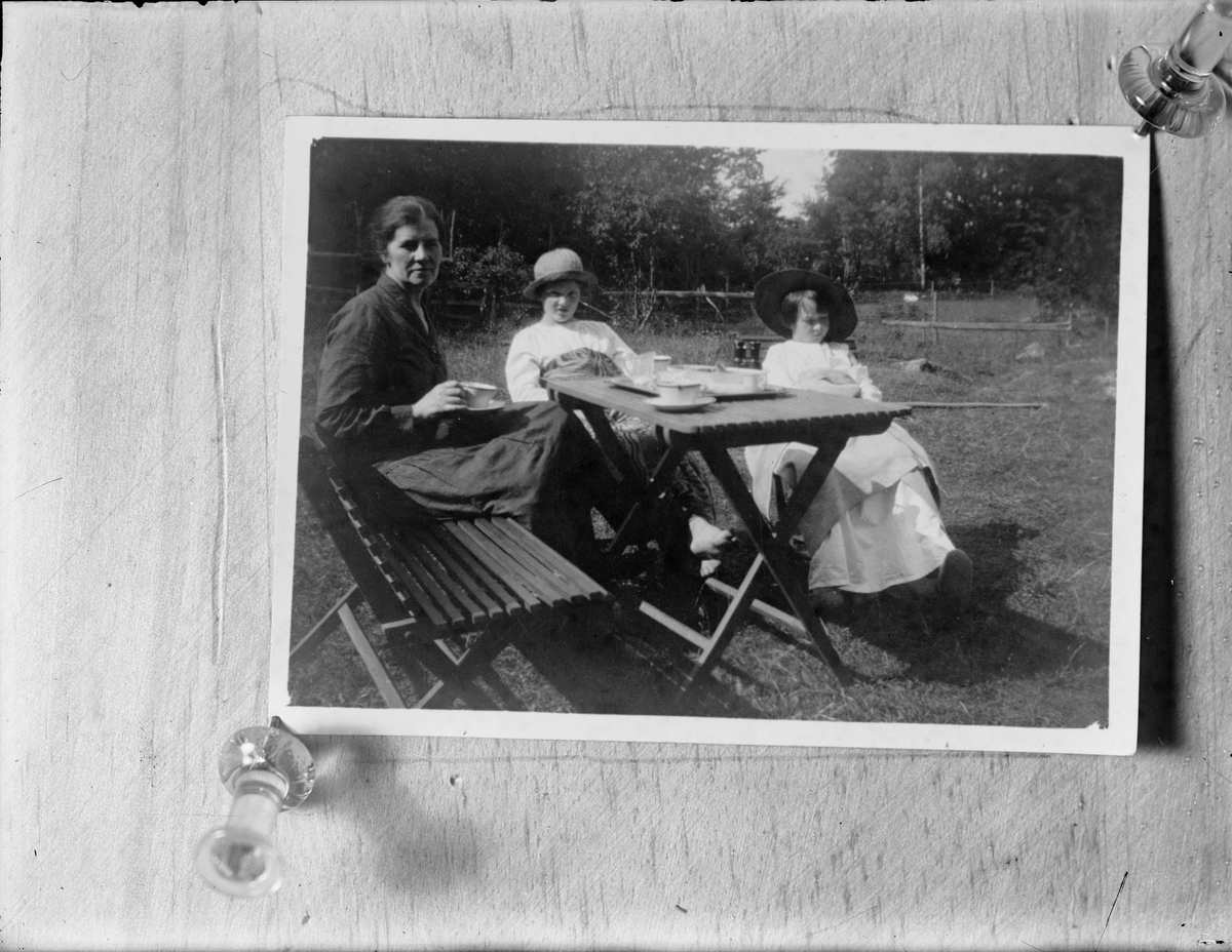Anna Hagelin med Ingrid och Ulla Liljefors, Ryttarbol, Funbo socken, Uppland