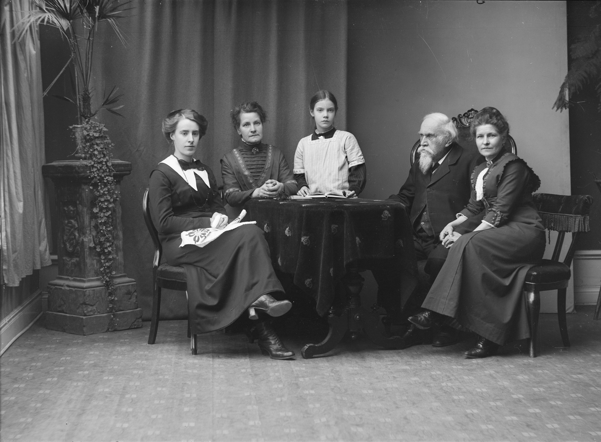 Ateljéporträtt - Emma och Henri Osti med sällskap, Uppsala november 1914