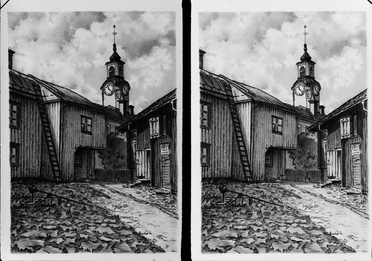 Målning av bakgård vid Rådhuset, Östhammar, Uppland