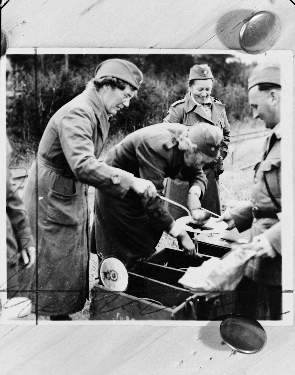 Reprofotografi - kvinnor i uniform serverar mat, Östhammar, Uppland