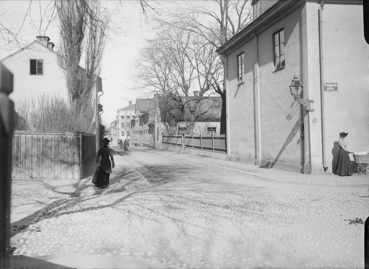 Slottsgränd från Trädgårdsgatan, Fjärdingen, Uppsala 1901 - 1902