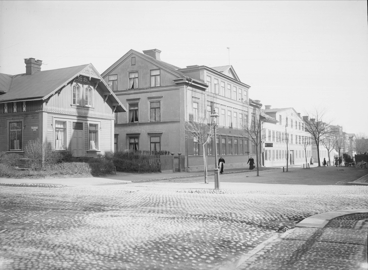 Hörnet Sysslomansgatan - Skolgatan, kvarteret Hervor, Luthagen, Uppsala 1901 - 1902