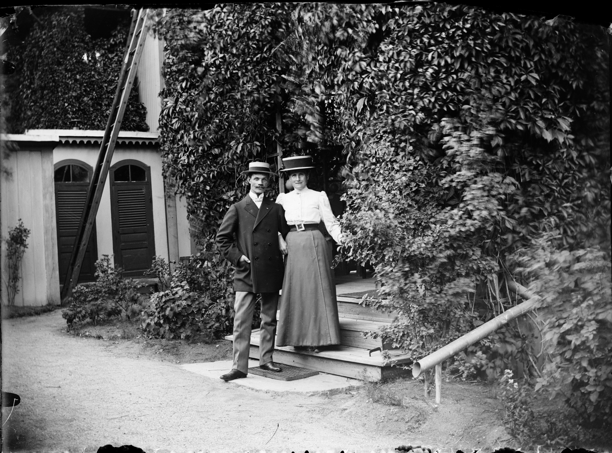Bankvaktmästare Erik Nygren med släkting, Drottninggatan 4, Östhammar, Uppland