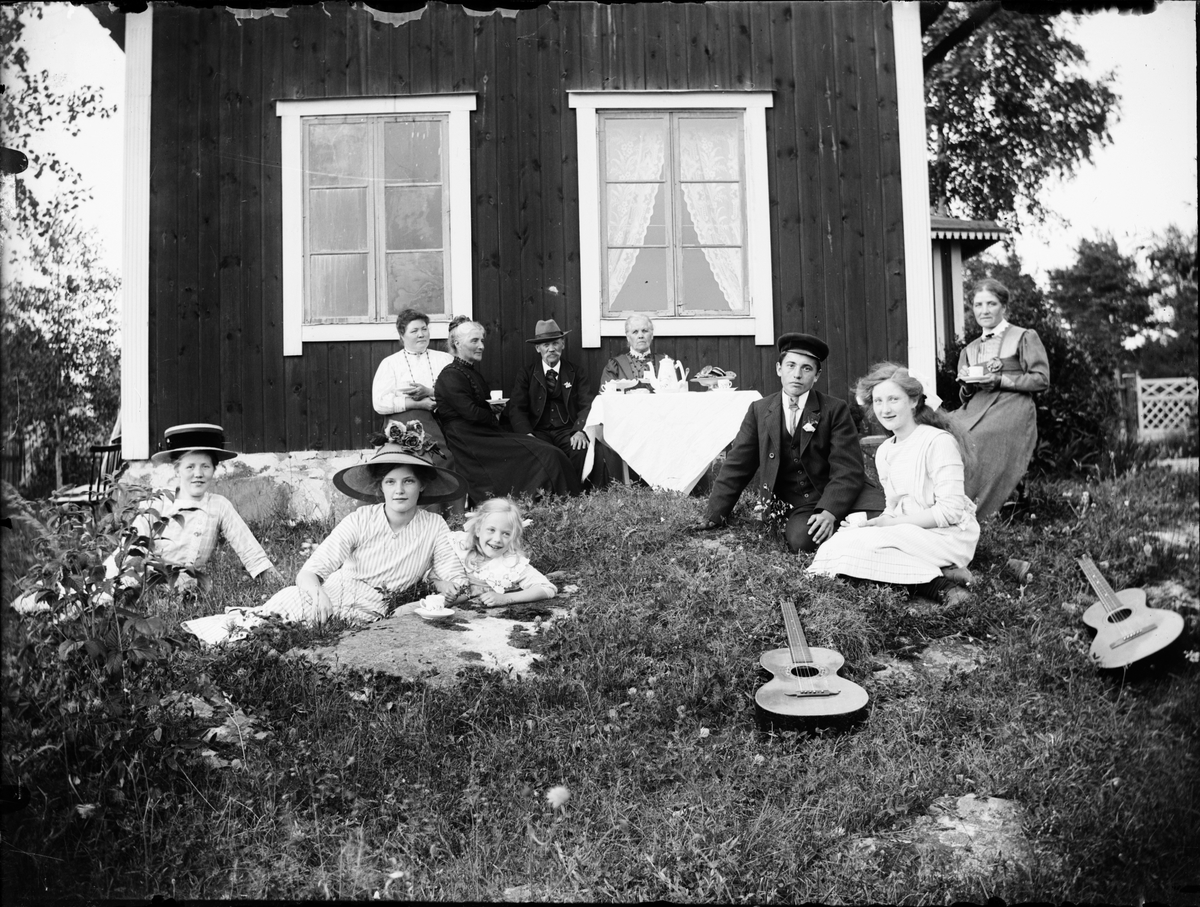 Kaffestund hemma hos vänner till familjen Skötsner-Edhlund, Kanikebolsgatan, Östhammar, Uppland