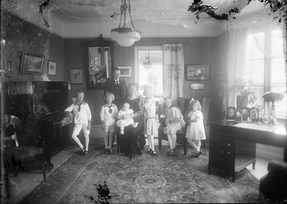 Handlare Oscar Leufstadius med familj i hemmet, Strandgatan 10, Öregrund, Uppland