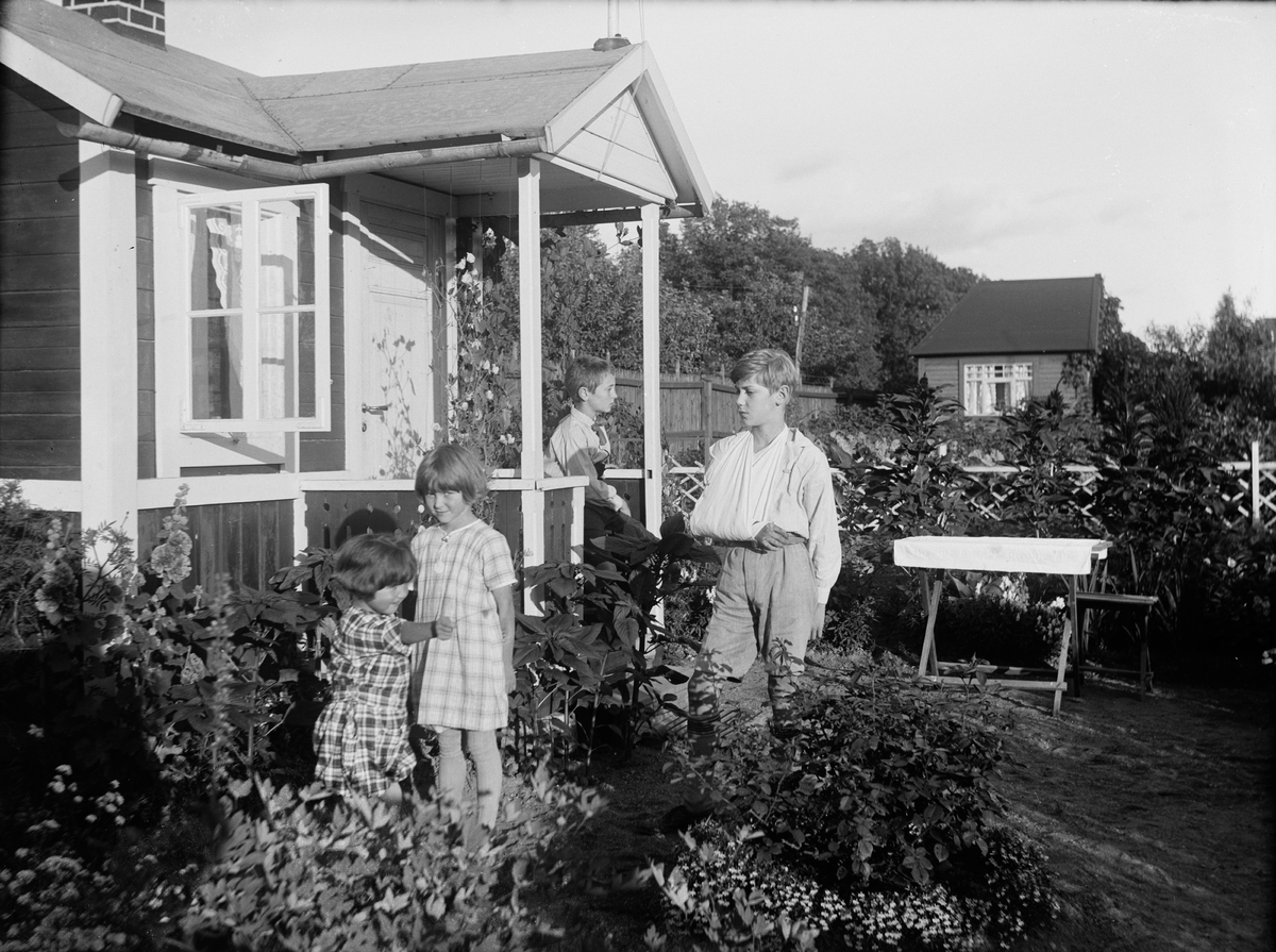 Barn vid familjen Ärnströms kolonistuga, nuvarande kvarteret Luthagsstranden, Luthagen, Uppsala