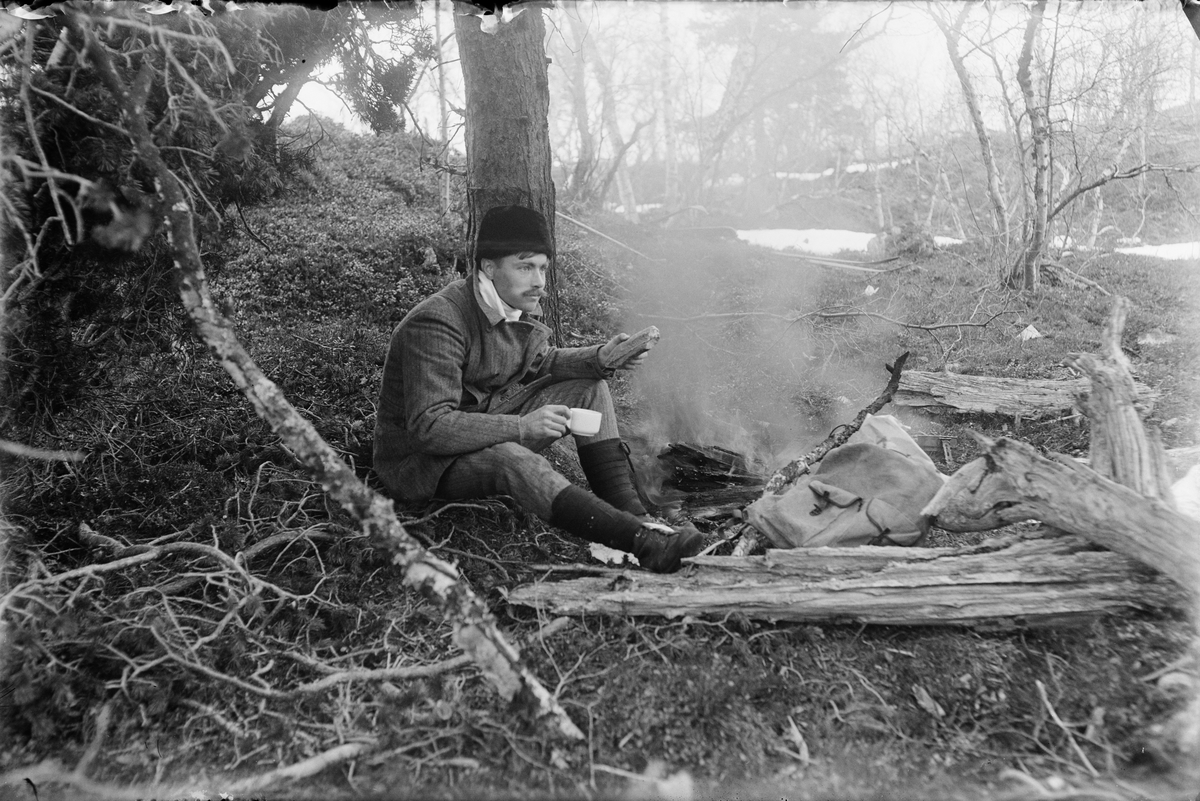 Josef Ärnström har matrast i skogen, Kattuvuoma, Kiruna, Lappland